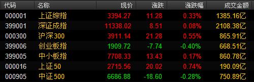沪深两市上午收盘,上证综指收报3,394.27点,上涨11.28点,涨幅0.33%,成交额1,385亿元;深证成指收报11,338.02点,上涨8.51点,涨幅0.08%,成交额2,108亿元;创业板指收报1,909.72点,下跌7.74点,跌幅0.4%,成交额668亿元。资金方面,央行公开市场今日进行200亿元人民币7天期逆回购操作。今日公开市场有200亿元逆回购到期,当日实现零回笼零投放。