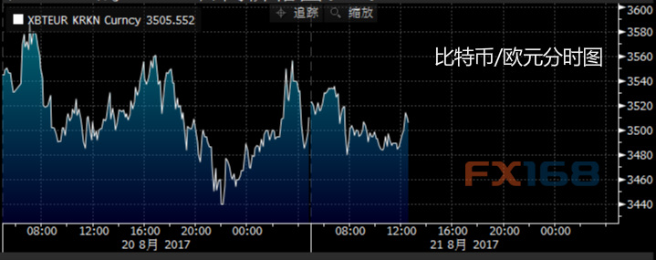 KRAKEN公布的报价显示,比特币/欧元(XBT/EUR)昨日震荡交投,最低触及3440附近,本交易日亚盘延续震荡行情,目前徘徊于3500附近。