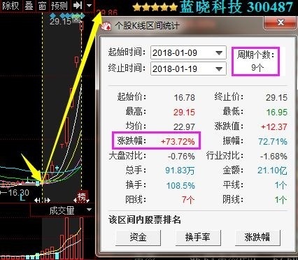 蓝晓科技300487,这支股票是尘生在1月9日号选出来的,前期股价也是一直洗盘,主力持续吸筹,当时股价在下跌回踩20日均线的时候,出现了十字星企稳信号,主力资金拐头向上,量能放大,我随即在微信圈发文章这只股票,之后股价开始了一波拉升,涨幅多少可以看到,很多微信圈的股民朋友在9号及时看到了文章,相信都有把握住这一波的短线机会,在这里也是恭喜各位都抓住了这一波收益的股友。没有抓住的股友也不要灰心,像这样的股,尘生会一直持续的在微信圈发文及时更新。想要学习这种选股方法的朋友可以添加文末笔者的私人好友来免费咨询交流!